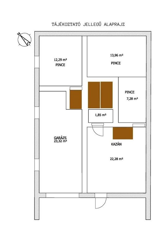 A pinceszinten garázs, műhely, tároló — akár mosókonyhának is alkalmas helyiség — valamint pince található, így a praktikus kiszolgáló terekből sincs hiány.