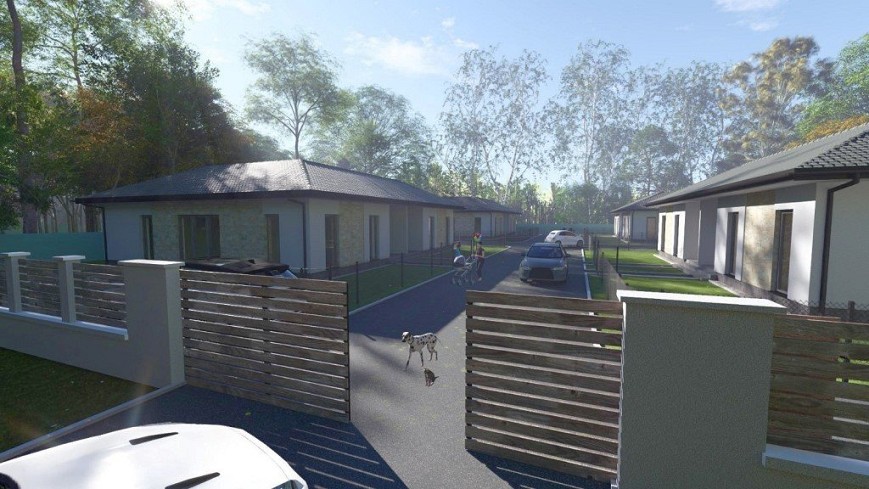 A 24 lakásos, barátságos lakóparkban található földszintes, kertkapcsolatos ikerház 90 m²-en kínál praktikus, tágas életteret, ahol a modern kivitelezés, a természet közelsége és a mindennapi kényelem harmonikus egységet alkot.