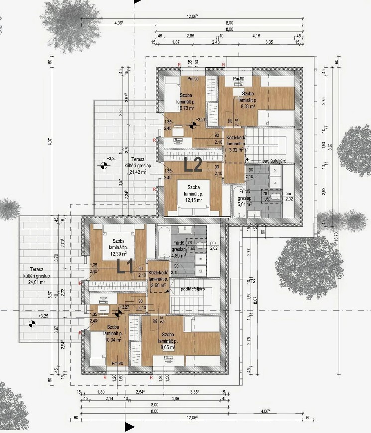 • minőségi, kezelt fa tetőszerkezet betoncserép fedéssel